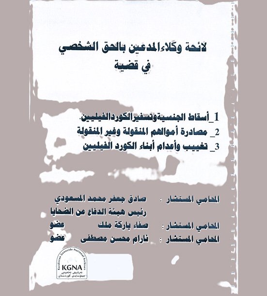 لائحة وکلاء المدعین بالحق الشخصي في قضیة الکورد الفیلیین تم جمعها وصيانتها وتحميلها بواسطة عدالت عمر